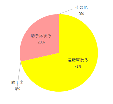 設置場所は「運転席後ろ」が71%で最も多く、「助手席後ろ」が29%でした。安全面を考慮すると、後部座席に設置するのがおすすめですね。