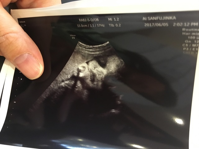 しかし、このエコーでは「手が写っているね」というお医者さんの言葉をすんなりと受け入れることが初めて出来ました。お腹の中で、あまり激しく動くことがなかったので、子どものお腹の中での様子を知ることが出来て、本当にうれしかったです。