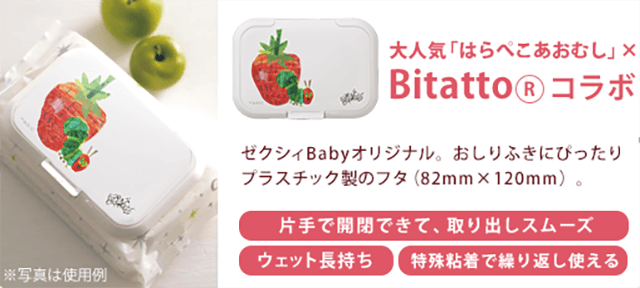 ⒈大人気「はらぺこあおむし」×Bitattoコラボ 「ゼクシィBabyオリジナル おしりふきのフタ」