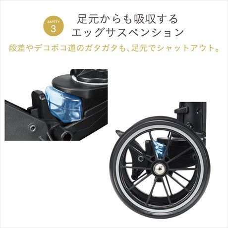 シートに伝わる前に振動を軽減させることで、赤ちゃんがより安全で心地よく乗れるように考えられています。