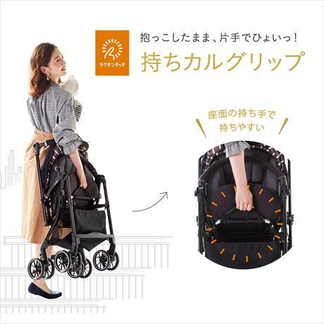 出典:www.combi.co.jp重さ5.1kgの軽さに加えて、ベビーカーを持ち上げるときに便利なのが座面裏の「持ちカルグリップ」。