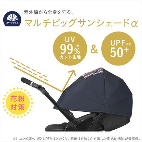 出典:www.combi.co.jp「スゴカルα」の幌は、赤ちゃんの足元まですっぽり覆えるマルチビッグサンシェードα。