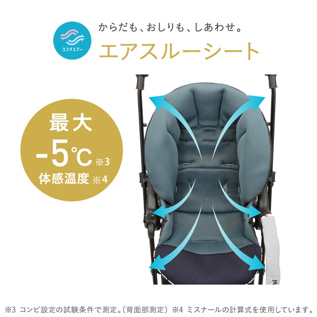 「エアスルーシート」で汗っかきの赤ちゃんも心地よく