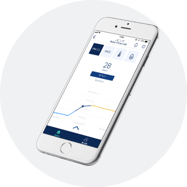 出典:www.blueair.jp空気清浄機に搭載された内蔵センサーなどで、室内の温度・湿度・PM2.5などの気になる情報がアプリで「見える」ように。