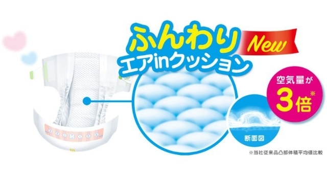 空気たっぷり!「ふんわりエア in クッション」で赤ちゃんのおしりにやさしくタッチ