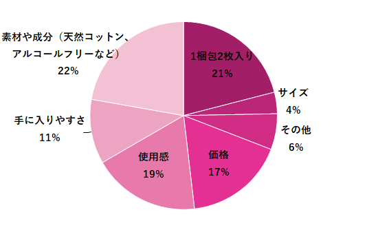 A.買ってよかった清浄綿、重視したポイントは「素材や成分」が22%!