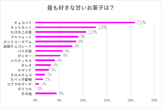 「きのこの山」との仁義なき戦いが取りざたされがちな「たけのこの里」ですが、ママたちの間では堂々の3位になりました!「見た目がかわいい」のコメントも多く、女子たちの心をつかむのに重要なポイントであることが判明。ママになっても、乙女心を忘れないママたちの一面も垣間見えましたよ!