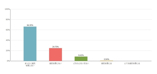 回答結果を見てみると、「まったく抵抗を感じない」が66.3%、さらに「抵抗を感じない」も24.7%に。
