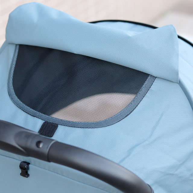 大きな日よけには開閉可能なメッシュウィンドウが