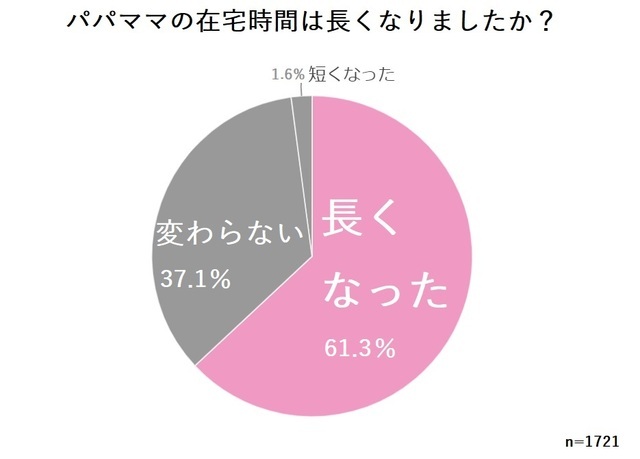 国がリモートワークを推奨していることなどもあり、6割以上の家庭でパパママの在宅時間は長くなっている実態が確認できました。