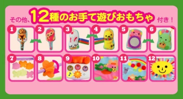 機能が充実!12種類ものお手て遊びおもちゃが付属