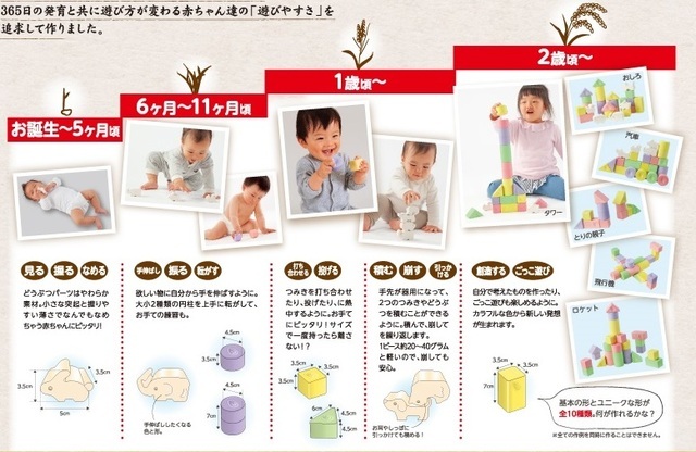 遊びながらお米のにおいが好きになるから、スムーズな離乳食デビューを応援!食育の要素もあるベビートイなのです。