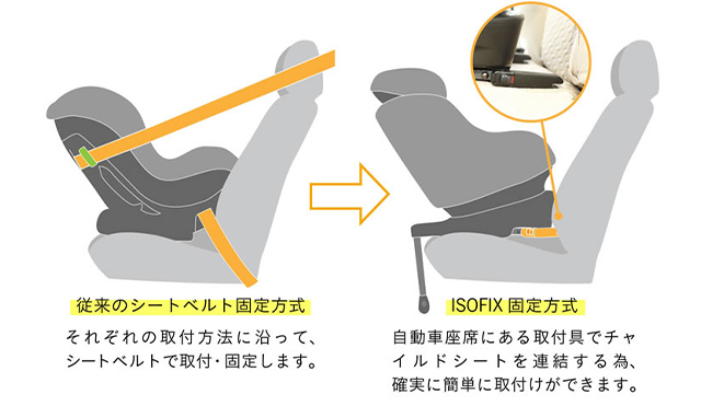 新安全基準では、ベルトでの固定が不要な「ISOFIX固定式」のみに変更!