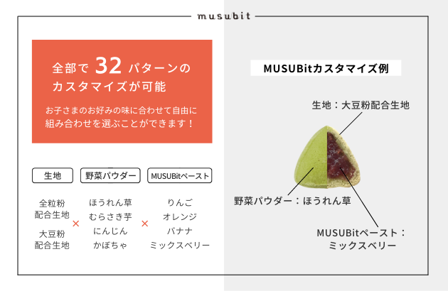出典:prtimes.jp有限会社小島製菓(本社:岩手県釜石市 /代表取締役:菊地広隆)はお子さまに食べさせたいお野菜や果物に合わせて、生地からカスタマイズ可能なD2Cお菓子ブランド「MUSUBit(ムスビ)」の販売を開始されます。