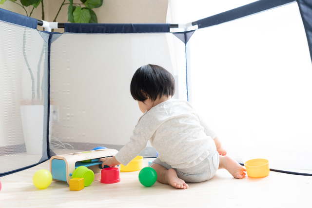 ベビーサークルの中で遊ぶ赤ちゃん,ベビー家具,インテリア,