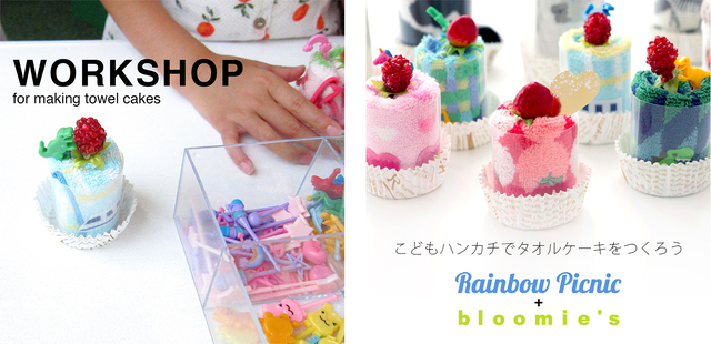 好きなハンカチを選んで、思い思いのタオルケーキをつくろう。おともだちへのプチギフトやご自身用にも。
