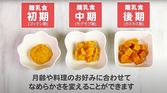 なめらかさも細かく調節!離乳食の各期間にふさわしい食感を