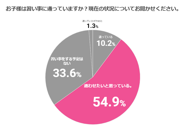 出典:*【習い事】に関するWebアンケート ※実施時期 2022年3月 ※n=679様々な習い事をさせたいと思うママパパは54.9%と多くいる一方で、共働きだとなかなか踏み出せない…という人も多くいるよう…。