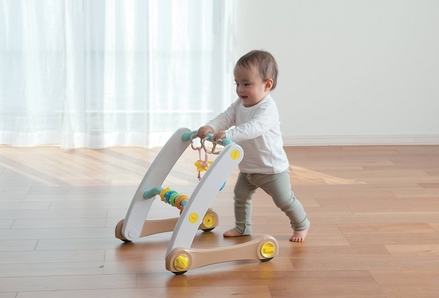 新生児から遊べるのがポイントで、1歳を過ぎたら、押し歩きとしても大活躍のウォーカーに変身するんですよ!世の中のおうち時間が増えているなか、頭も体も使うアクティブトイとしておすすめです。