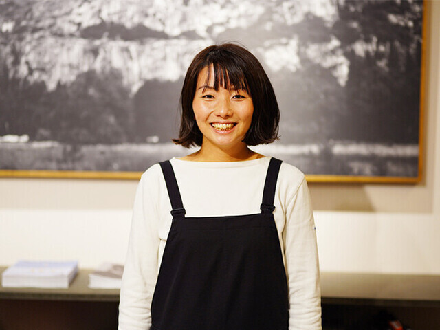 写真は、THE NORTH FACE 事業一部 キッズグループMD 矢野真知子氏/自身の妊娠・出産経験を活かして2019年秋冬シーズンにマタニティラインを立ち上げる。現在はマタニティやキッズのアイテム企画に日々奔走中。