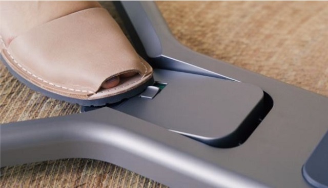 3段階でスムーズにリクライニングできるバウンサー「evolve バウンサー」は足で踏み込んで操作できる仕組みを採用。