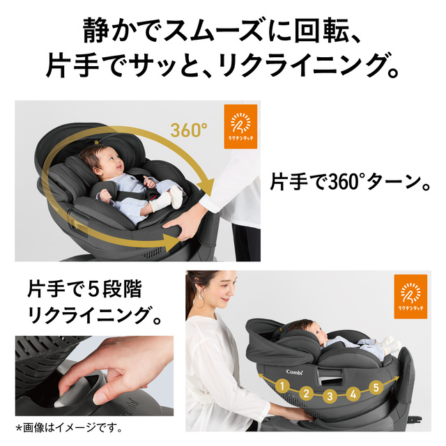 しかも、静かでスムーズに回転、片手でサッと、リクライニングできる360°ターンで使いやすい。
