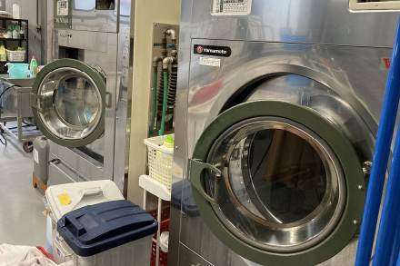 大きなシート等は水圧機や高圧スチームを使用し洗浄をして汚れを落としていきます。