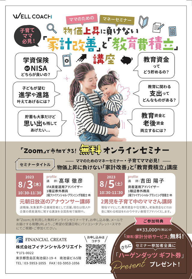 元朝日放送のアナウンサーが初心者でもわかりやすく、ママの為の『家計改善』と『積立術』を分かりやすく説明してくれます。