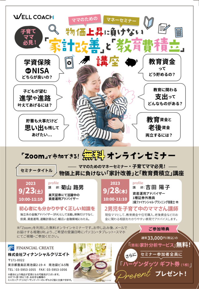2児のママさん講師が初心者でもわかりやすく、ママの為の『家計改善』と『積立術』を分かりやすく説明してくれます。
