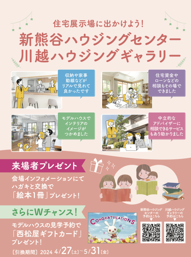 新熊谷ハウジングセンターの見学予約はこちら!川越ハウジングギャラリーの見学予約はこちら! ・掲載内容や連絡先等は、現在と異なる場合があります。・表示価格は、改正前の消費税率で掲載されている場合があります。ご了承ください。 関連記事 こどもの未来を育む家「育実の丘 みずほ台」モデルハウスご来場キャンペーン♫ プレスリリース情報 PR みんなで育む、「育実の丘・上尾」モデルハウスご来場・ご体感キャンペーン プレスリリース情報 PR 家事・育児を楽しくシェア!「育実の丘・北浦和」モデルハウス見学会のお知らせ プレスリリース情報 PR 関連するキーワード
