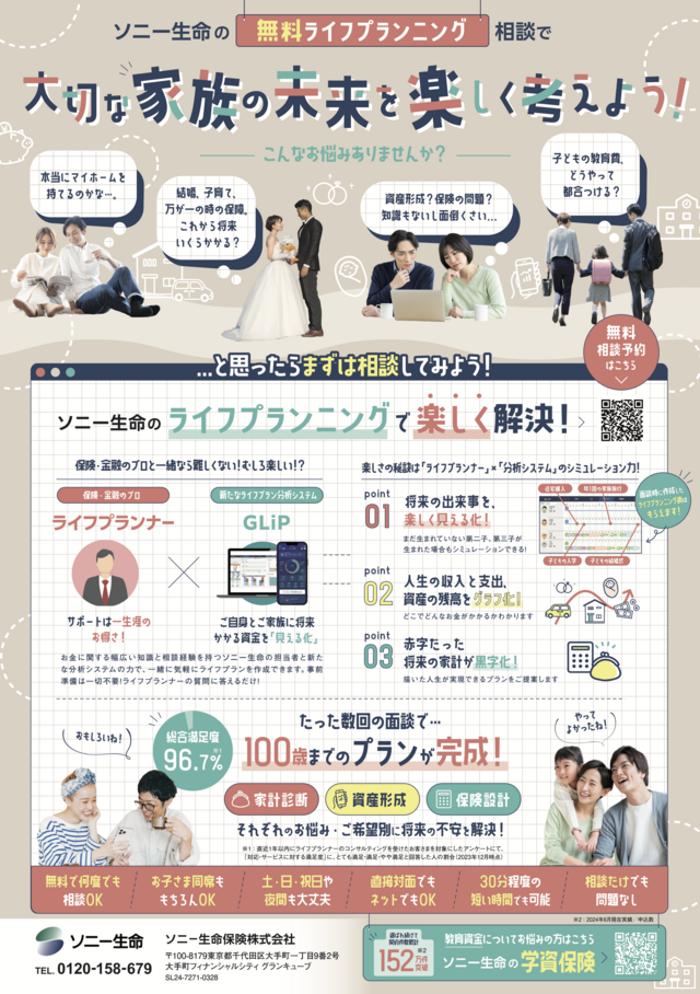 無料ライフプランニングの相談は、チラシ下部の申込ボタンからお申込みください。無料ライフプランニングの相談はこちら! ・掲載内容や連絡先等は、現在と異なる場合があります。・表示価格は、改正前の消費税率で掲載されている場合があります。ご了承ください。 関連記事 FP Office株式会社、湘南鎌倉事務所新店オープン! プレスリリース情報 PR 教育費やマイホームなどお金のことなら何でもOK!無料で相談できるチャンス♪ ソニー生命保険 PR ママに人気のソニー生命の学資保険をご紹介!保険・金融のプロに、無料で相談できる! ソニー生命保険 PR 関連するキーワード