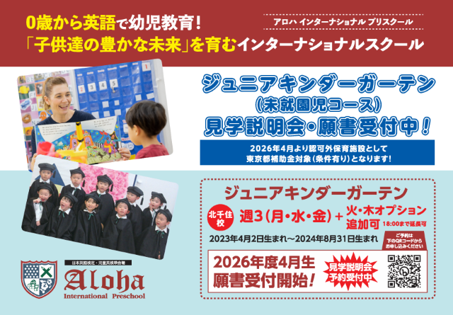 見学説明会予約受付中見学説明会予約受付中まとめ ・掲載内容や連絡先等は、現在と異なる場合があります。・表示価格は、改正前の消費税率で掲載されている場合があります。ご了承ください。 関連記事 JALの整備工場見学に行こう!飛行機好きにはたまらない! kht アロハインターナショナルプリスクール 説明会のお知らせ プレスリリース情報 PR アロハインターナショナルプリスクール 説明会のお知らせ プレスリリース情報 PR 関連するキーワード