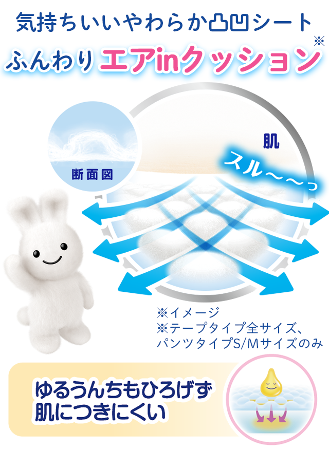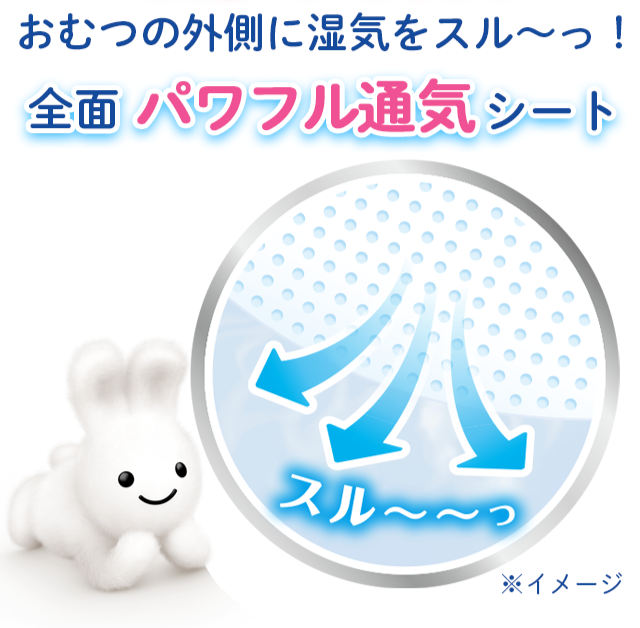 50億個以上※の目に見えない穴で、おむつの外側に湿気をスル〜ッ。