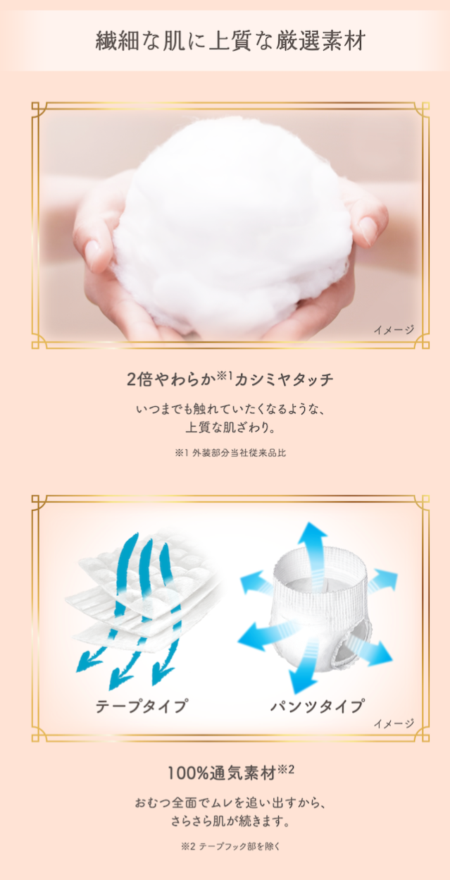 おむつは赤ちゃんの肌に触れるものだから、やさしく、長時間快適なおむつを選んであげたい……